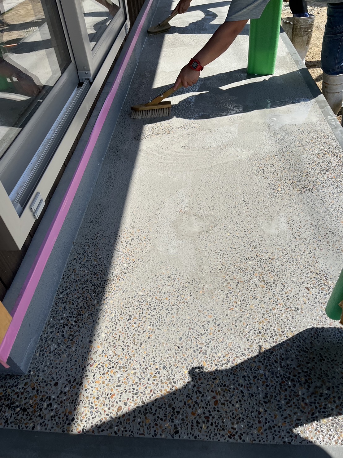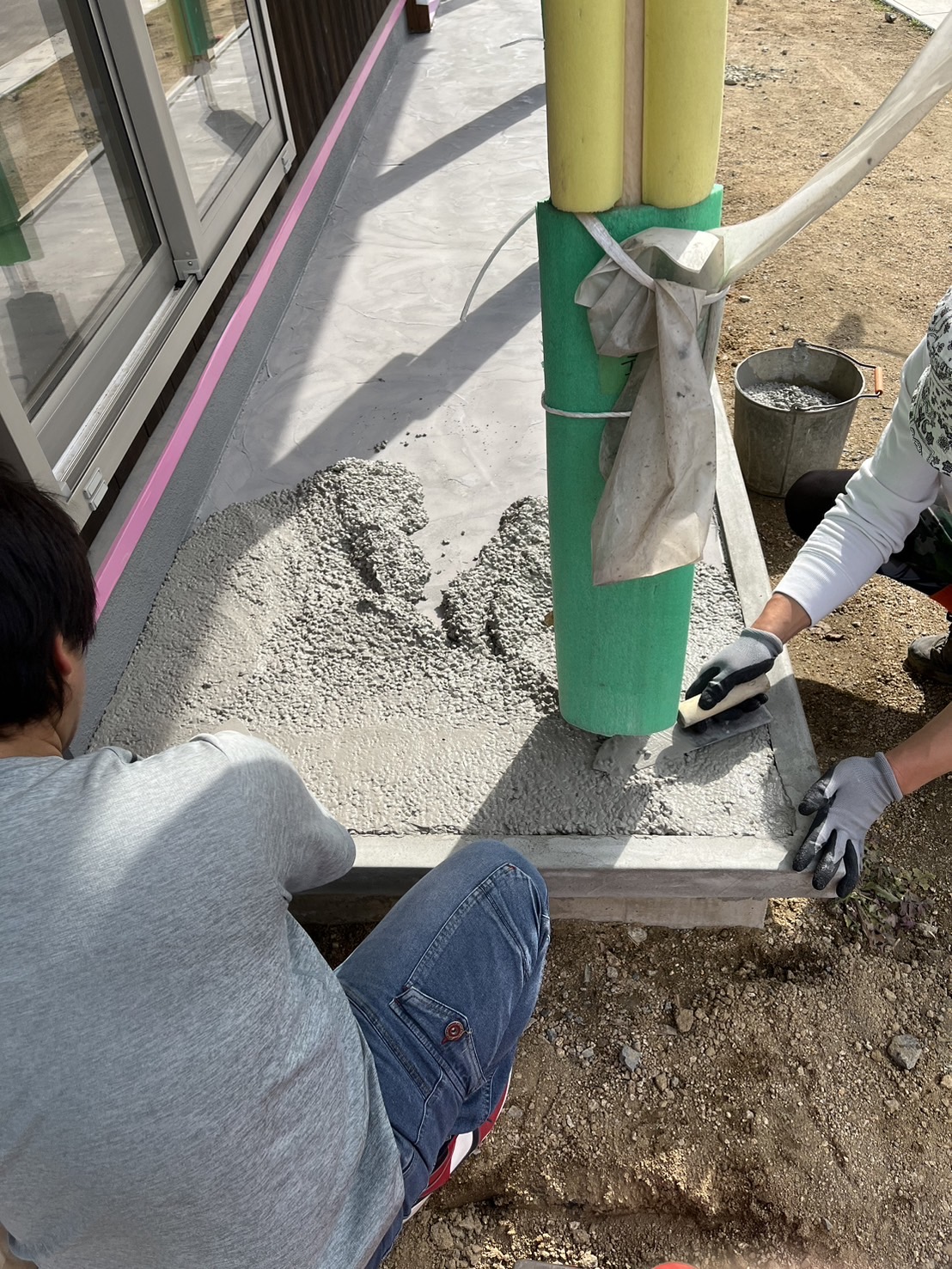 どうも🙋♂️ 宇野左官工業です✨ 今回は倉敷市にて玄関の洗い出し作業の投稿でございます! 洗い出しとは、石とセメントを混ぜて塗り付け、乾ききる前に水で洗い流し石を浮き出させる手法です🪨 よく割烹や料亭で見かけるやつです!